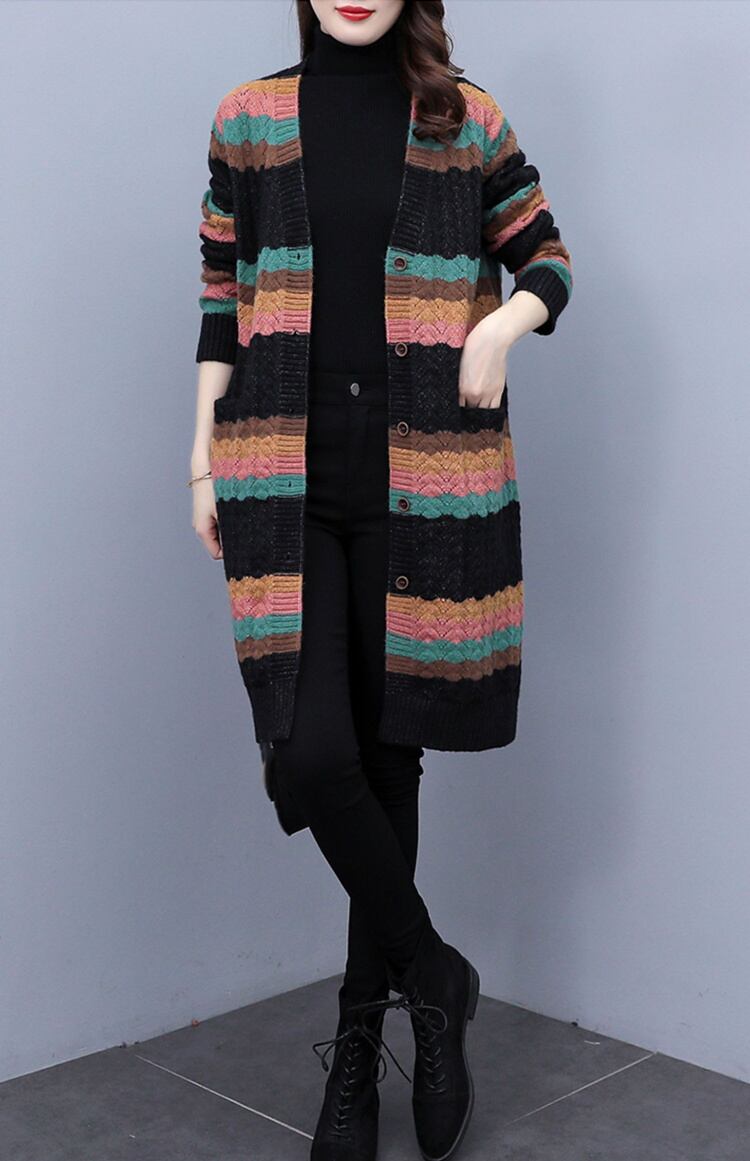 トップス アウター ロングカーディガン ロング ロング丈 袖あり 長袖 襟なし ワイド ポケット 前開き かわいい 大人可愛い シンプル カジュアル 大人 上品 おしゃれ お洒落 大人女子 こなれ感 ラフ 個性的 主役級 存在感 柄 ボーダー 秋 冬 20代 30代 レディース 女性用 デート お出かけ 公園デビュー 女子会 お泊まり 休日 着回し 普段使い ファッション コーデ スタイル 楽ちん モテ 体系カバー プレゼント ギフト S M L XL 2XL 3XL 色展開 ベージュ グレー ブラック