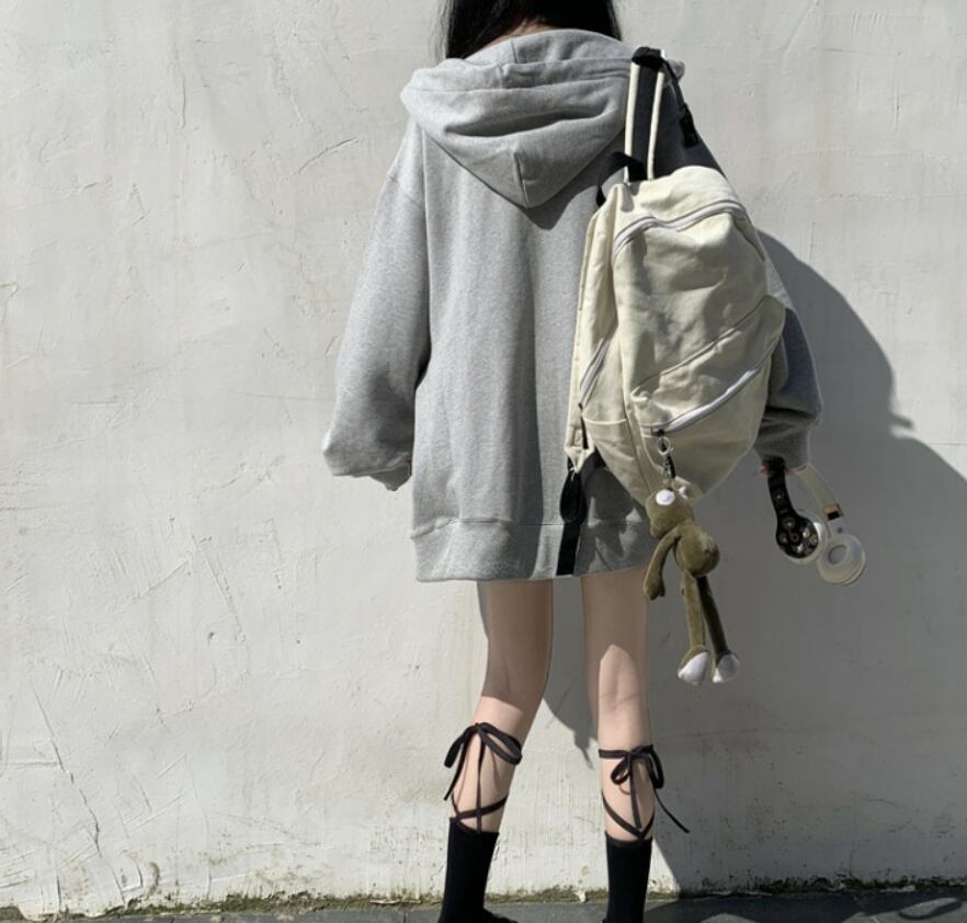 大きめのフードやゆるシルエットがどこか甘い雰囲気を醸し出す1着。