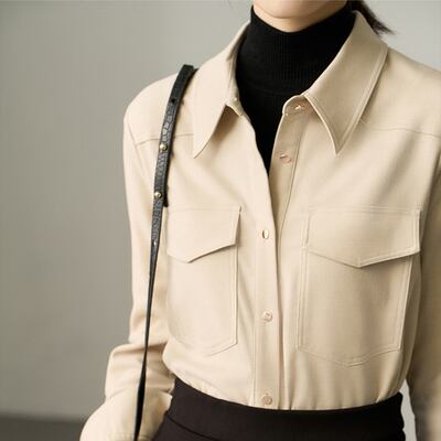 大人カラー 厚手 襟付き 長袖 シャツ トップス ミディアム丈 袖あり ポケット 前開き かわいい 大人可愛い きれいめ シンプル カジュアル 大人 おしゃれ お洒落 大人女子 こなれ感 ルーズ 無地 春 秋 20代 30代 レディース 通勤 学生 通学 デート お出かけ 女子会 休日 旅行 着回し 普段使い 重ね着 韓国 韓国系 暖かい ゆったり サイズ S M L XL 色展開 ベージュ カーキ