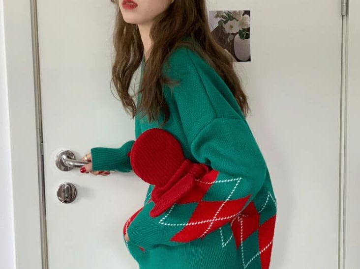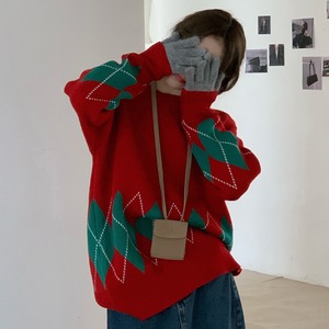 アーガイル柄 ラウンドネック ニットセーター トップス セーター プルオーバー ミディアム丈 袖あり 長袖 ドロップショルダー 襟なし ニット かわいい 大人可愛い カジュアル 大人 おしゃれ お洒落 大人女子 こなれ感 ルーズ 柄 チェック柄 格子柄 春 秋 冬 クリスマス 10代 20代 レディース 通勤 学生 通学 デート お出かけ 女子会 休日 旅行 着回し 普段使い 重ね着 韓国 韓国系 オルチャン 暖かい ゆったり ゆる サイズ M L XL 色展開 赤 レッド 緑 グリーン