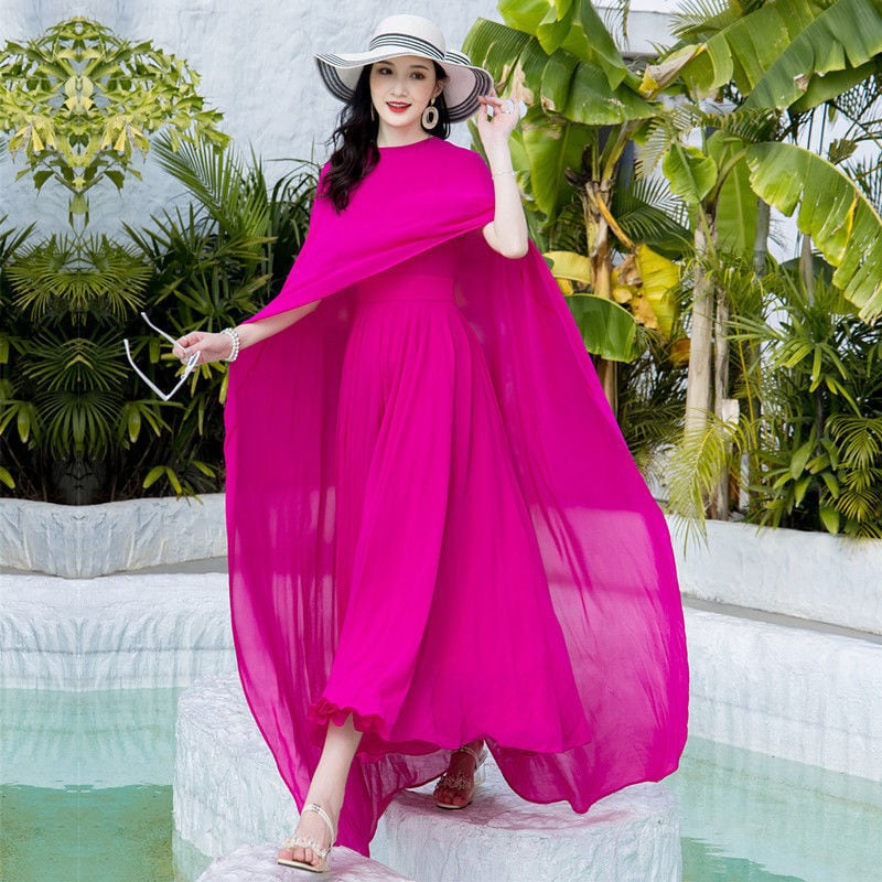セットアップ ワンピース ケープ 2点セット アウター フレアワンピース ワンピドレス 膝下 ロング丈 マキシ丈 ノースリーブ ラウンドネック フレア スリム Aライン ハイウエスト ツーピース 大人可愛い きれいめ シンプル 大人 上品 おしゃれ エレガント 無地 春 夏 30代 40代 レディース デート お出かけ 休日 リゾート 旅行 海 プール 着回し 重ね着 大きいサイズ M L XL 2XL 3XL 4XL 色展開 白 ホワイト 赤 レッド 青 スカイブルー 黄色 イエロー ローズレッド