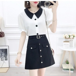 セットアップ 半袖 長袖 襟付き シャツ ミニスカート 2点セット 上下セット トップス スカート ボトムス ブラウス ミニ ミニ丈 膝上 袖あり ラウンドネック スリム Aライン フリル ベルト ハイウエスト ツーピース かわいい 大人可愛い シンプル カジュアル 大人 おしゃれ お洒落 大人女子 ガーリー 無地 春 夏 秋 10代 20代 レディース 通勤 学生 通学 デート お出かけ 女子会 休日 旅行 着回し 普段使い 韓国 大きいサイズ M L XL 2XL 3XL 色展開 黒 ブラック カーキ