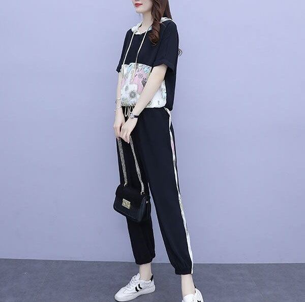 半袖パーカーとパンツの2点セットは、おしゃれな花柄プリントでこなれ感も抜群。