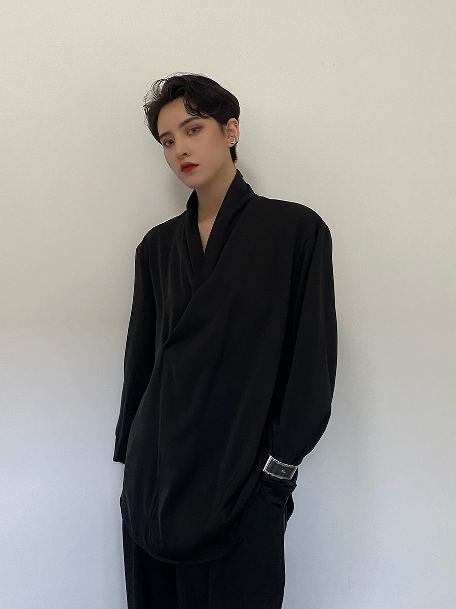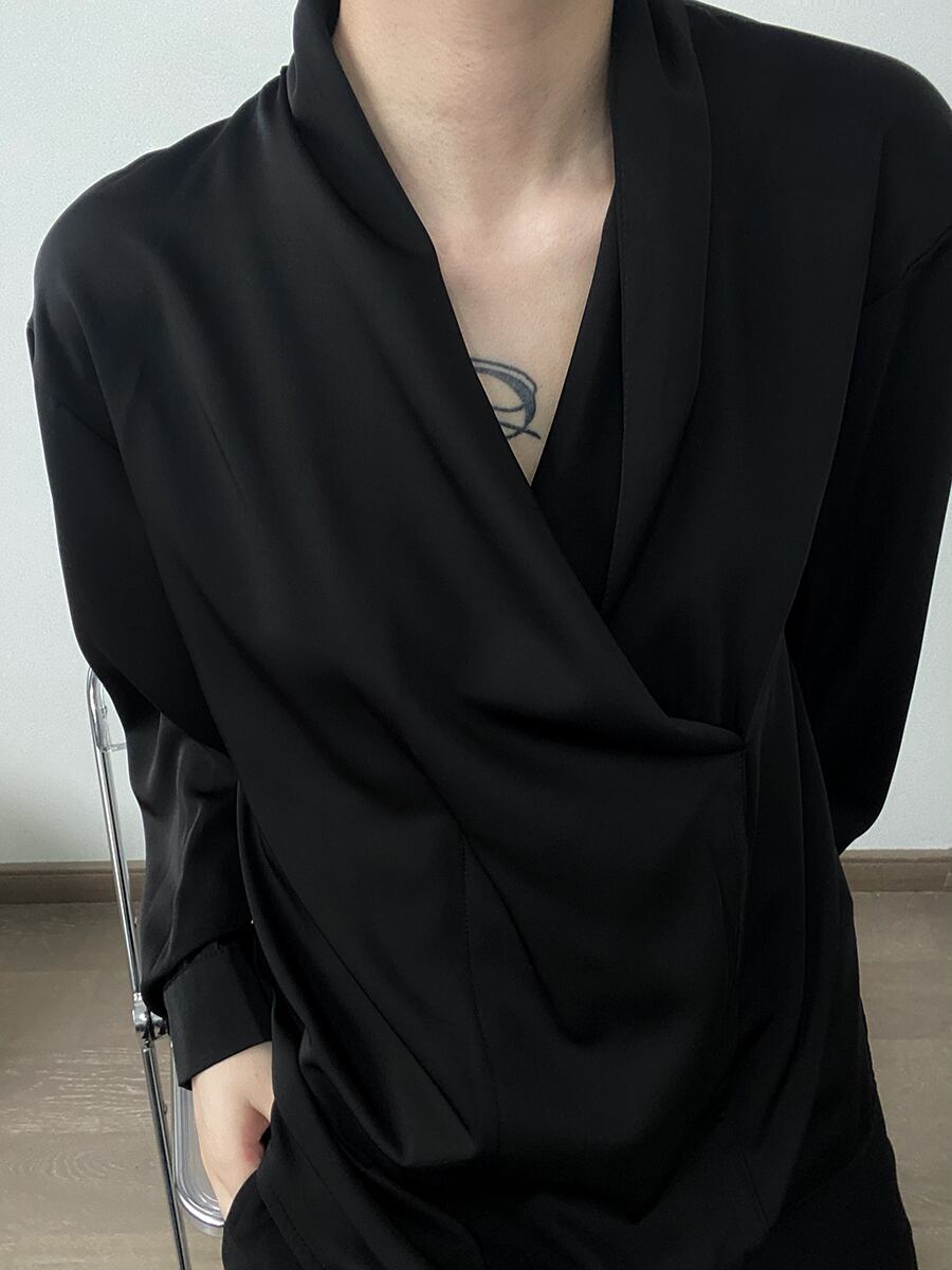 長袖 カシュクール Vネック シャツ トップス シャツ プルオーバー ミディアム丈 袖あり ポリエステル 薄手 シンプル カジュアル 大人 おしゃれ お洒落 かっこいい こなれ感 メンズライク マニッシュ ルーズ クール モード系 モダン 無地 春 秋 10代 20代 レディース メンズ 男女兼用 通勤 学生 通学 デート お出かけ 女子会 休日 旅行 着回し 普段使い 重ね着 韓国 韓国系 ゆったり ゆる モノトーン コーデ M L XL 色展開 黒 ブラック