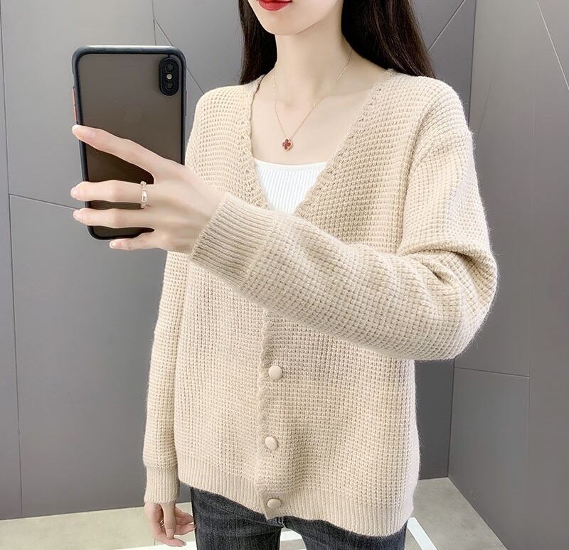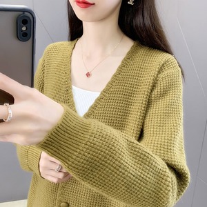 Vネック ワッフル ニット カーディガン トップス ミディアム丈 袖あり 長袖 襟なし 前開き クロシェ 編み込み かわいい 大人可愛い きれいめ シンプル カジュアル 大人 おしゃれ お洒落 大人女子 ルーズ 無地 春 秋 10代 20代 30代 レディース 通勤 学生 通学 デート お出かけ 女子会 休日 旅行 着回し 普段使い 重ね着 韓国 韓国系 オルチャン ゆったり サイズ S M L XL 色展開 ライトブラウン 黄色 イエロー