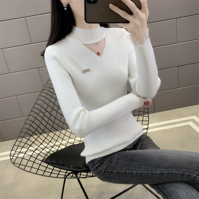 半ハイネック カットアウト 長袖 リブ ニットセーター トップス セーター ミディアム丈 袖あり 襟付き スリム 細身 リブニット 伸縮性 ニット かわいい 大人可愛い きれいめ シンプル カジュアル 大人 おしゃれ お洒落 大人女子 個性的 無地 春 秋 10代 20代 レディース 通勤 学生 通学 デート お出かけ 女子会 休日 旅行 着回し 普段使い 重ね着 韓国 韓国系 オルチャン 暖かい サイズ S M L XL 色展開 白 ホワイト 黒 ブラック