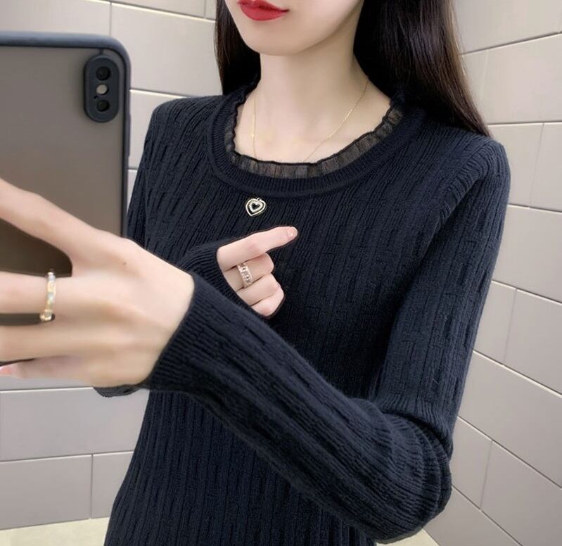 長袖 レース ラウンドネック リブ ニットセーター トップス セーター プルオーバー ミディアム丈 袖あり 襟なし スリム 細身 レース フリル リブニット ニット かわいい 大人可愛い きれいめ シンプル カジュアル 大人 おしゃれ お洒落 大人女子 ガーリー 柄 春 秋 10代 20代 レディース 通勤 学生 通学 デート お出かけ 女子会 休日 旅行 着回し 普段使い 重ね着 韓国 韓国系 オルチャン 暖かい サイズ S M L XL 色展開 黒 ブラック オフホワイト