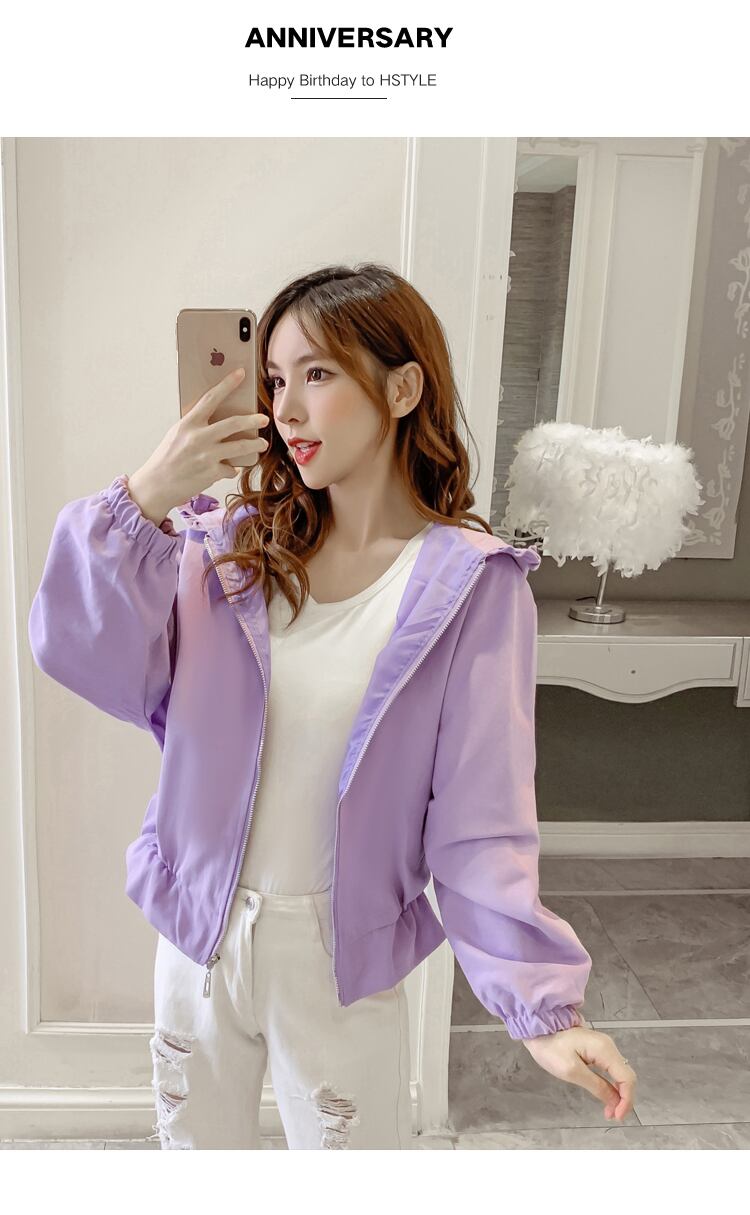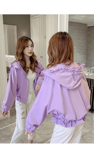 トップス アウター パーカー ショート ショート丈 袖あり 長袖 襟なし ワイド シフォン フード付き ファスナー ポリエステル かわいい 大人可愛い シンプル カジュアル おしゃれ お洒落 大人女子 ラフ 無地 春 夏 秋 冬 10代 20代 30代 レディース ママ 着回し 普段使い S M L XL 白 ホワイト 紫 パープル イエロー