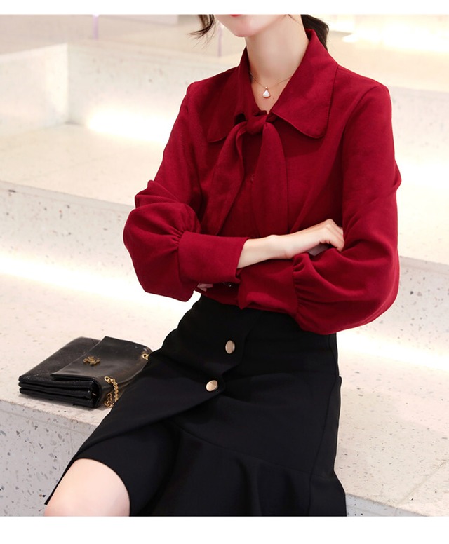 #長袖 #かわいい #シンプル #おしゃれ #ボウタイブラウス