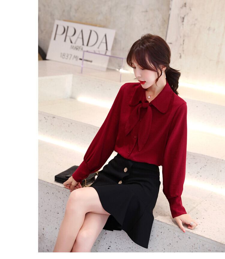 ボウタイブラウス トップス ブラウス 袖あり 長袖 ボリューム袖 Vネック フレア シフォン リボン ポリエステル かわいい 大人可愛い きれいめ シンプル 大人 上品 おしゃれ 無地 春 夏 10代 20代 オフィス ビジネス OL 通勤 着回し 普段使い 韓国系 オルチャン ファッション コーデ S M L XL 2XL 白 ホワイト 赤 レッド 緑 グリーン