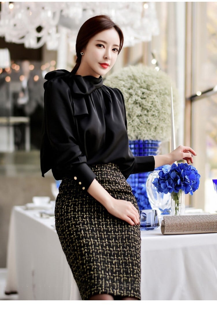 フリルブラウス トップス ブラウス 袖あり 長袖 ボリューム袖 ハイネック シフォン リボン ポリエステル かわいい 大人可愛い きれいめ 大人 上品 おしゃれ 大人可愛い 大人女子 モード系 セクシー 無地 10代 20代 30代 レディース ママ オフィス ビジネス OL 通勤 XS S 黒 ブラック