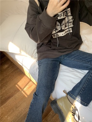 レトロな雰囲気が魅力のロング丈のハイウエストブーツカットデニムパンツ。