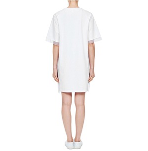 大人可愛いレースとロゴが主張する五分袖Tシャツワンピース。