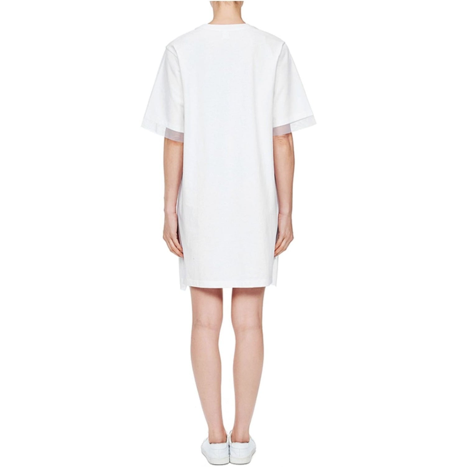 五分袖 レース ミニ丈 Tシャツ ワンピース トップス カットソー ビッグT ミニ 袖あり 半袖 5分袖 ドロップショルダー ラウンドネック 襟なし アシンメトリー 透け感 綿 かわいい 大人可愛い カジュアル 大人 おしゃれ お洒落 大人女子 こなれ感 ルーズ 個性的 存在感 柄 ロゴ 英字 春 夏 秋 10代 20代 レディース 通勤 学生 通学 デート お出かけ 女子会 休日 旅行 着回し 普段使い 楽ちん 体系カバー ゆったり ゆる 小さいサイズ XS S M 色展開 白 ホワイト 黒 ブラック