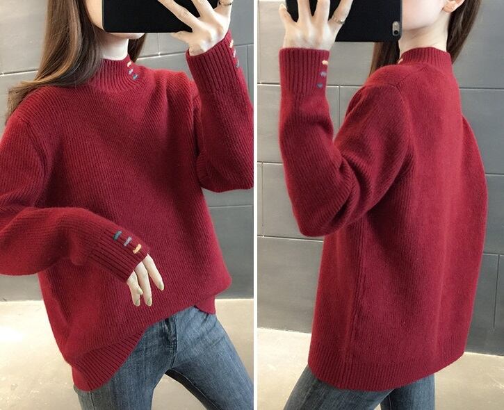 半ハイネック 長袖 リブ ニットセーター トップス セーター ミディアム丈 袖あり 襟付き リブニット ニット 薄手 厚手 かわいい 大人可愛い きれいめ シンプル カジュアル 大人 おしゃれ お洒落 大人女子 ルーズ 無地 春 秋 冬 10代 20代 レディース 通勤 学生 通学 デート お出かけ 女子会 休日 旅行 着回し 普段使い 重ね着 韓国 韓国系 オルチャン 暖かい ゆったり ゆる サイズ S M L XL 色展開 赤 レッド 緑 グリーン ベージュ 黄色 イエロー ネイビー