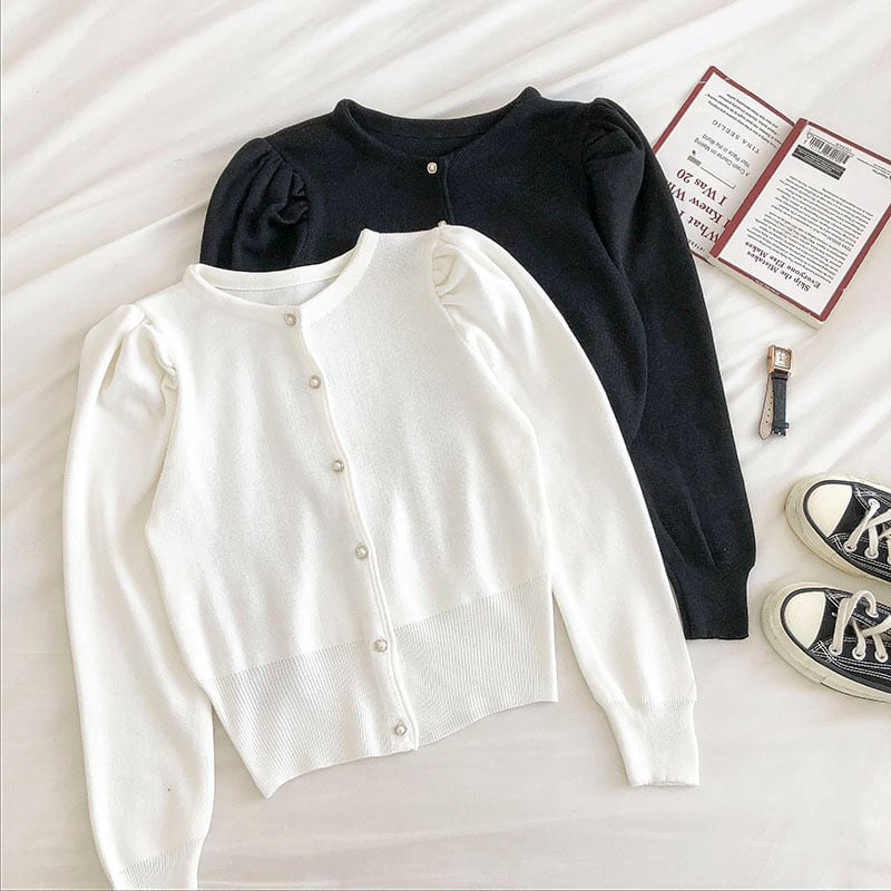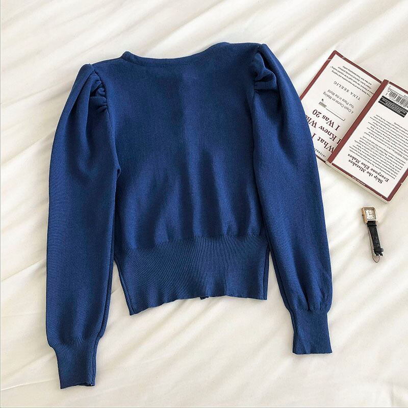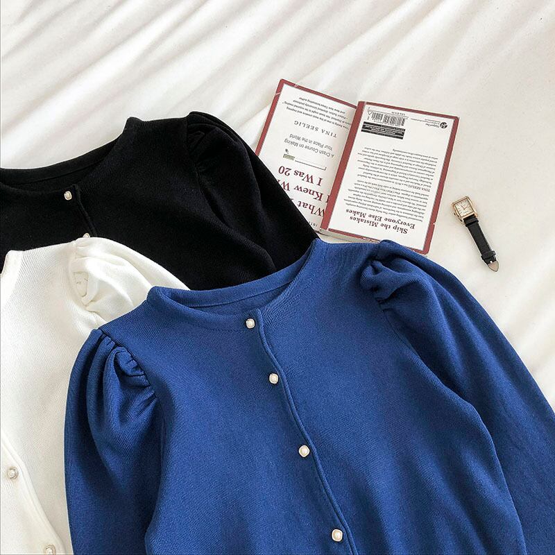 トップス カーディガン レディース ニットカーディガン ニット パフスリーブ フレンチ シンプル 無地 ラウンドネック シングルブレスト ボタン スクープネック スリムフィット かわいい 大人可愛い きれいめ シンプル カジュアル 大人 上品 おしゃれ お洒落 かっこいい レトロ 着回し 普段使い 重ね着 お揃い モード系 セクシー エレガント モダン 主役級 存在感 フォーマル ギフト プレゼント インスタ映え レストラン 定番 ママ モテ 旅行 白 黒 青 オールシーズン 春 夏 秋 冬 フリーサイズ