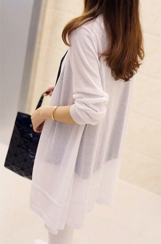 長袖 シースルー Vネック ニット カーディガン トップス ミディアム丈 袖あり 襟なし 前開き 透け感 薄手 かわいい 大人可愛い きれいめ シンプル カジュアル 大人 おしゃれ お洒落 大人女子 無地 春 秋 20代 30代 40代 レディース ママ 通勤 学生 通学 デート お出かけ 女子会 休日 旅行 着回し 普段使い 重ね着 韓国 韓国系 楽ちん 体系カバー ゆったり 大きいサイズ S M L XL 2XL 3XL 色展開 白 ホワイト 黒 ブラック 水色 ライトブルー ピンク