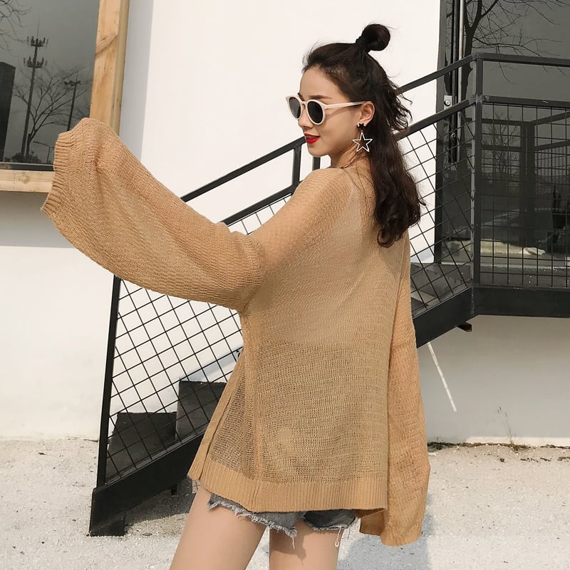 トップス カーディガン 袖あり 長袖 ストレート 透け感 ニット かわいい 大人可愛い きれいめ シンプル カジュアル おしゃれ お洒落 ラフ 無地 春 夏 秋 10代 20代 30代 レディース デート お出かけ フリーサイズ ゆったり ゆる 色展開 ホワイト ブラウン アプリコット