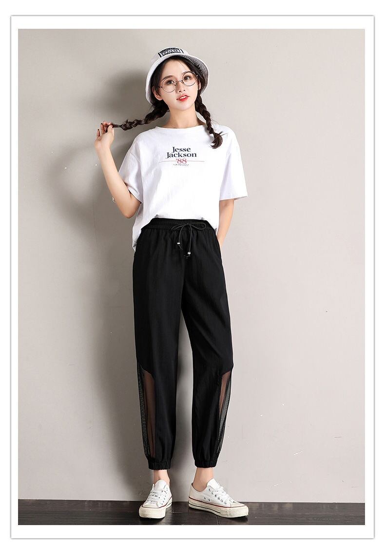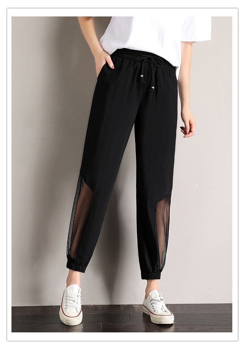 スポーツパンツ女性ルーズ夏ドレープ薄いカジュアル ボトムス パンツ ズボン アンクル丈 切り替えデザイン 切り替えデザイン ポケット 透け感 シースルー きれいめ シンプル カジュアル おしゃれ かっこいい こなれ感 ラフ スポーティー 無地 春 夏 10代 20代 30代 レディース OL 学生 通学 デート お出かけ 公園デビュー 女子会 休日 運動 アウトドア 旅行 着回し 普段使い M L XL 2XL 3XL ブラック