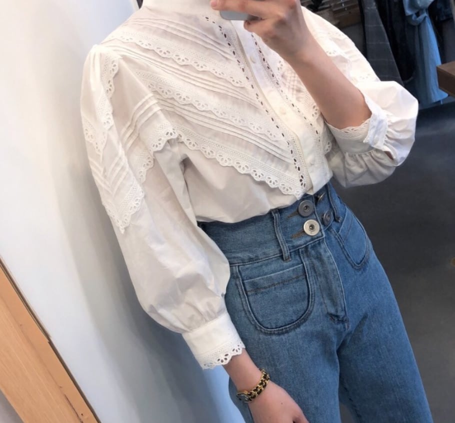 ウェストのボタンがかわいい、カジュアルでおしゃれなデニムパンツ。