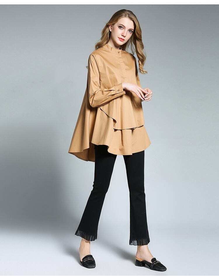 ブラウス トップス シャツ ブラウス 袖あり 長袖 スタンドカラー フレア アシンメトリー 前開き かわいい 大人可愛い きれいめ シンプル カジュアル 大人 上品 おしゃれ お洒落 大人可愛い 大人女子 こなれ感 ラブリー キュート ガーリー 個性的 モダン 主役級 存在感 無地 春 夏 秋 10代 20代 30代 レディース OL 通勤 学生 通学 デート お出かけ 女子会 休日 着回し 普段使い 重ね着 韓国系 オルチャン サイズ L XL 2XL 3XL 色展開 白 ホワイト