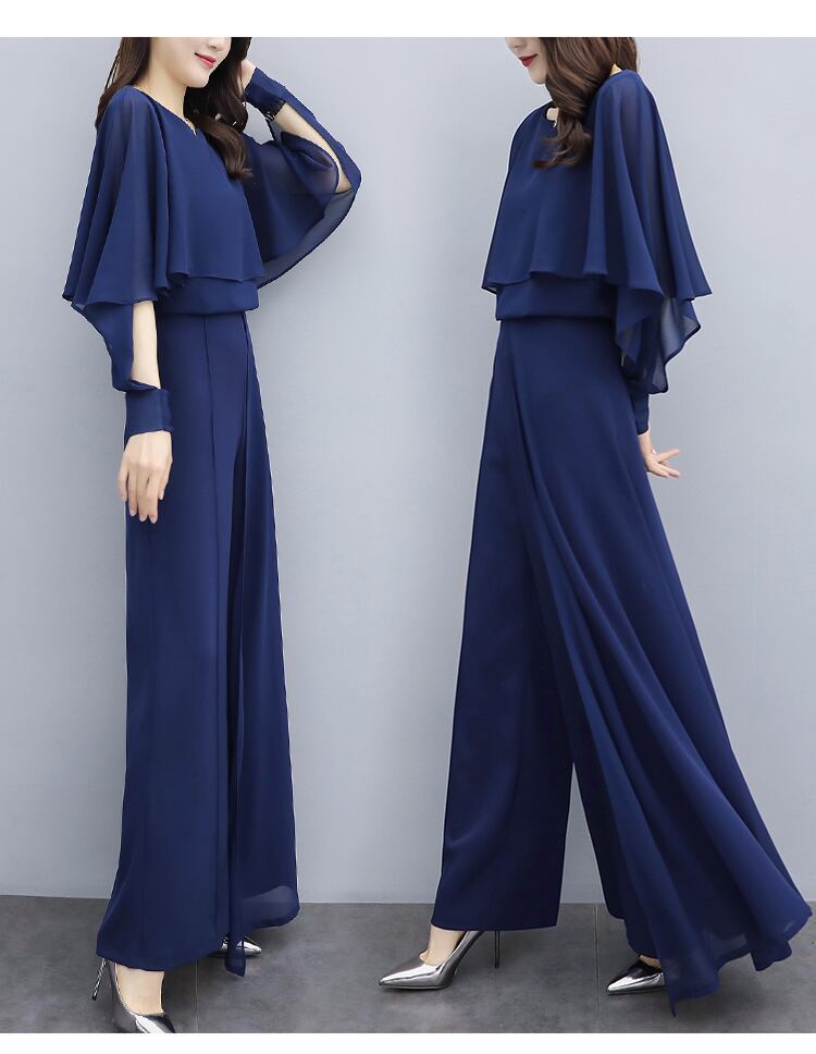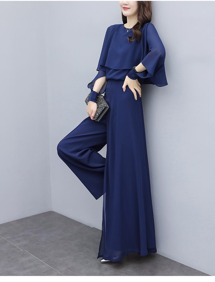 トップス ボトムス セットアップ ワイドパンツ ロング丈 長袖 ラウンドネック ワイド シフォン 上下セット 2点セット ツーピース 大人可愛い きれいめ 上品 おしゃれ お洒落 かっこいい クール 無地 春 秋 20代 30代 レディース デート お出かけ パーティー お呼ばれ イベント サイズ S M L XL 2XL 3XL ゆったり ゆる 色展開 ブラック ネイビー