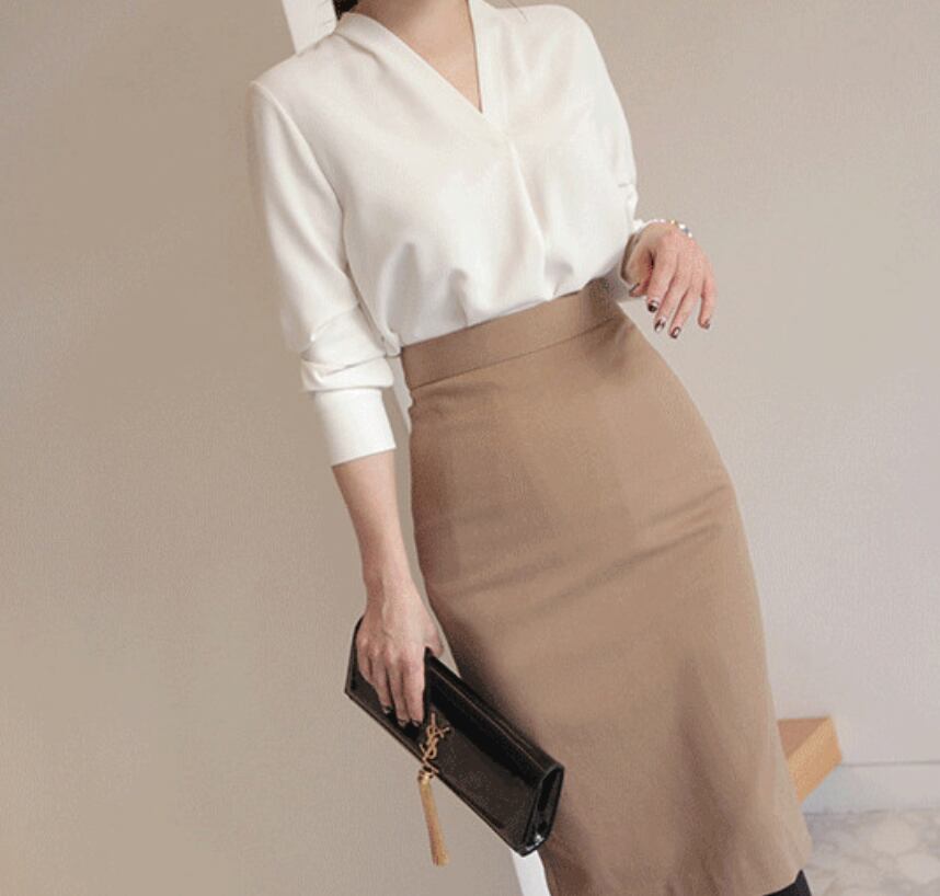 トップスの決定版! 大人可愛いシフォン長袖Vネックシャツが新登場! 襟なしで上品な印象でビジネスシーンでも活躍◎ ストレートなシルエットが美しく、春秋はもちろん、通年着用可能です。OLの通勤からデートまで幅広く活躍する、おしゃれかっこいい一着です!