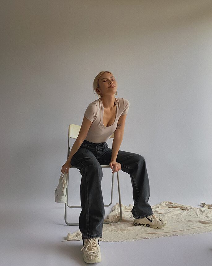 ルーズなシルエットがリラックス感を与え、自然なスタイルを演出します。