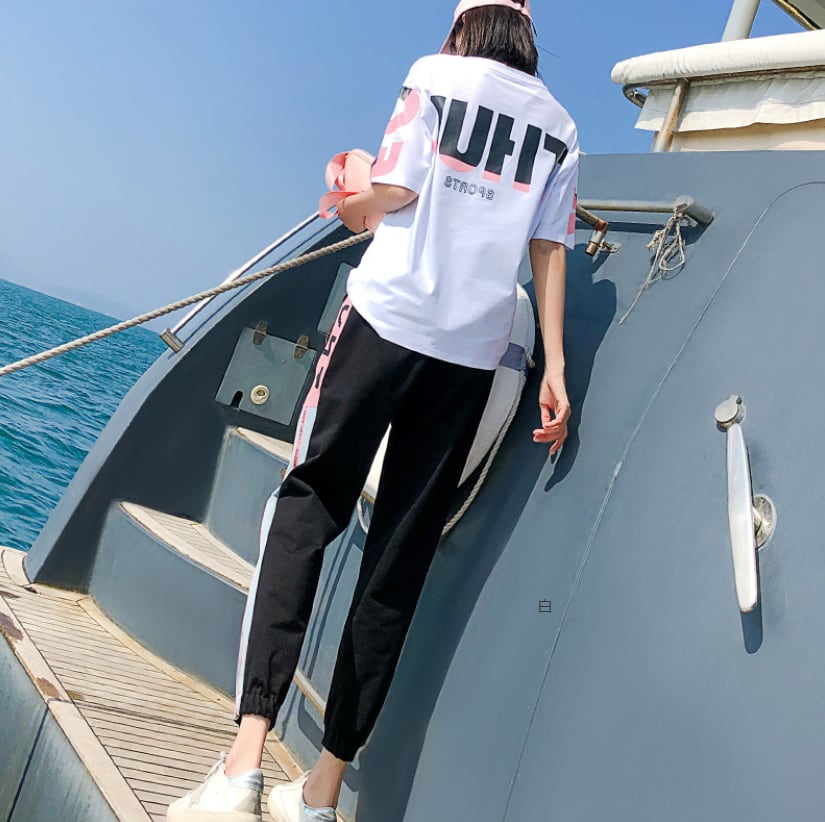 夏にぴったりな、オシャレで快適なスポーツウェア!Tシャツ ジャージ の上下2点セットで、ジムやヨガにも最適。カラーもホワイトとピンクから選べます。お家時間にもぴったりなアイテムです。