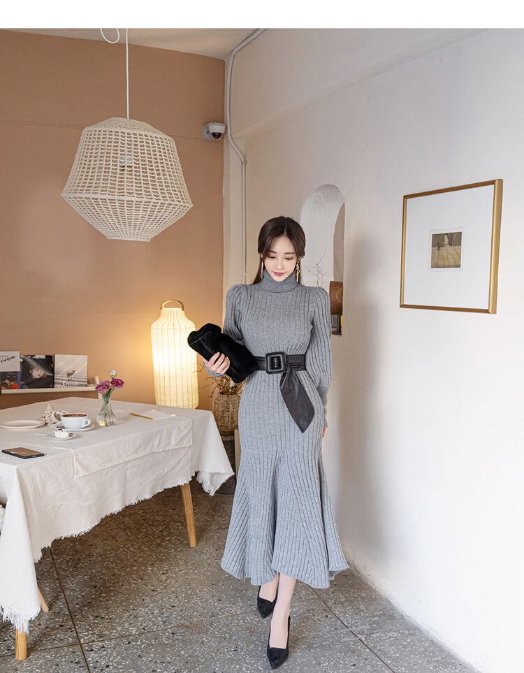 #長袖 #かわいい #シンプル #おしゃれ #ハイネックニットワンピース
