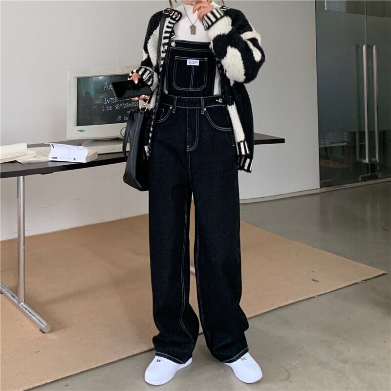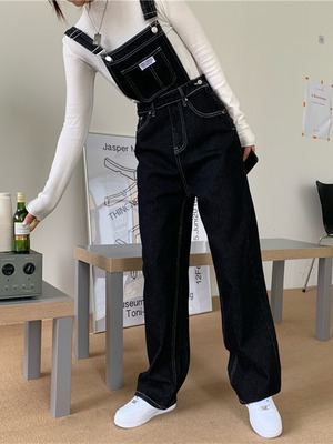 こなれ感漂うロング丈ストレートデニムサロペット!