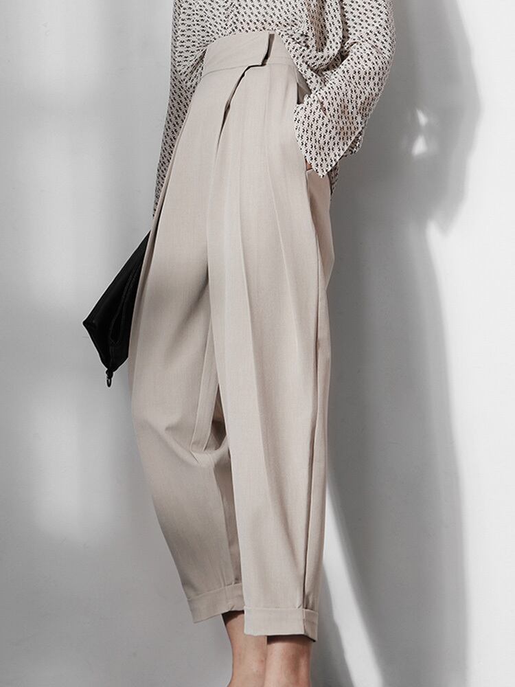 ハイウエストで脚長効果抜群の9分丈クロップドパンツ。きれいめからカジュアルまで、様々なスタイルに合わせられます。シンプルな無地デザインなので、コーディネートの主役級アイテムとして活躍してくれます。