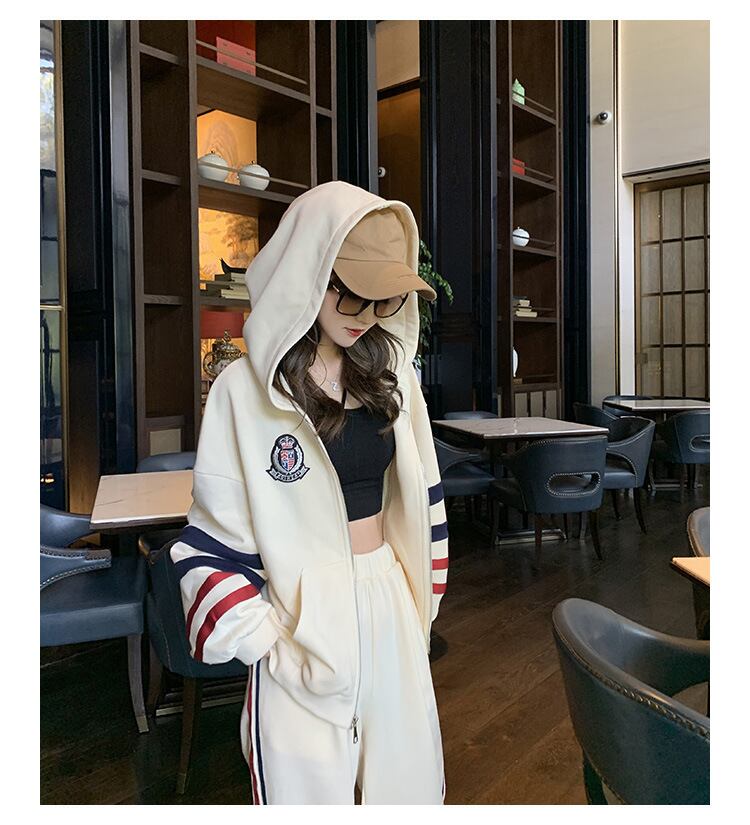 スポーティーな洋服がお好きな方必見!フード付きでラフな印象を与え、アクセントとなるストライプ柄がおしゃれさをプラス。ルーズなシルエットで、少し大きめのサイズを選ぶのがおすすめです。長袖で春秋にぴったり、ズボンにはポケットもついて、小物も収納可能。ヨガやジム、ちょっとしたお出かけにも活躍します。