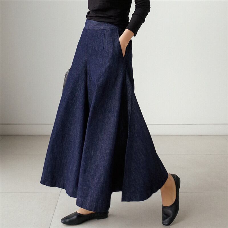 ボトムス パンツ ワイドパンツ ロング丈 ワイド ガウチョ ポケット デニム かわいい 大人可愛い カジュアル おしゃれ お洒落 かっこいい メンズライク ガーリー 無地 春 夏 秋 10代 20代 30代 40代 レディース デート お出かけ ファッション サイズ S M L XL