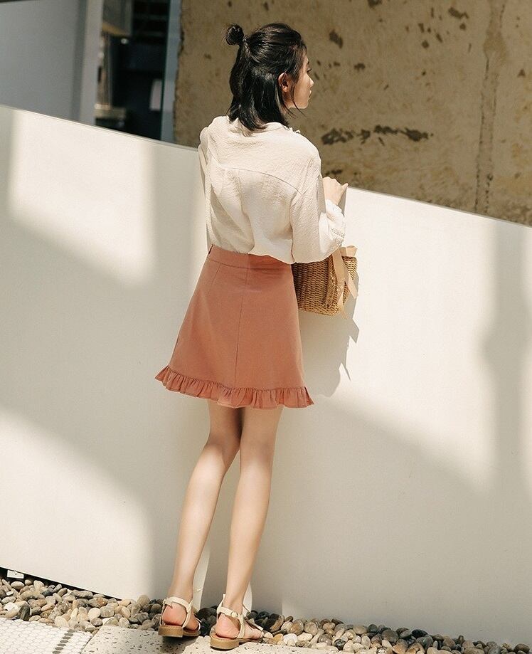 ハイウエスト フリル ミニ スカート ボトムス ミニスカート フレアスカート ミニ丈 膝上 フレア スリム Aライン ポケット かわいい 大人可愛い シンプル カジュアル 大人 おしゃれ お洒落 レトロ 大人女子 キュート ガーリー 無地 春 夏 秋 冬 10代 20代 レディース 通勤 学生 通学 デート お出かけ 女子会 休日 旅行 着回し 普段使い 韓国 韓国系 オルチャン サイズ S M L 色展開 ベージュ オレンジ