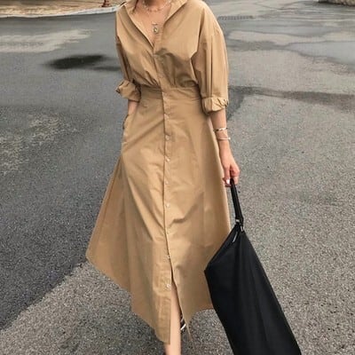 ロング丈 七分袖 シャツワンピース ワンピース シャツ ロング マキシ マキシ丈袖あり 7分袖 Vネック 襟付き Aライン 切り替えデザイン ハイウエスト かわいい 大人可愛い きれいめ シンプル カジュアル 大人 おしゃれ お洒落 大人女子 こなれ感 無地 春 夏 秋 10代 20代 30代 レディース ママ 通勤 学生 通学 デート お出かけ 公園デビュー 女子会 休日 旅行 着回し 普段使い 重ね着 韓国 韓国系 楽ちん サイズ S M 色展開 緑 ダークグリーン ベージュ