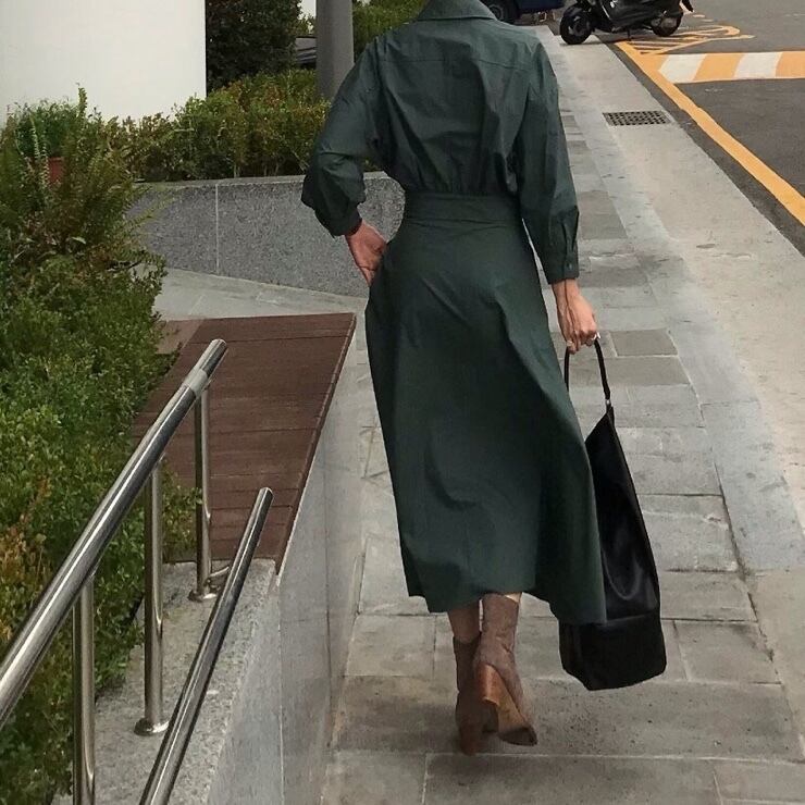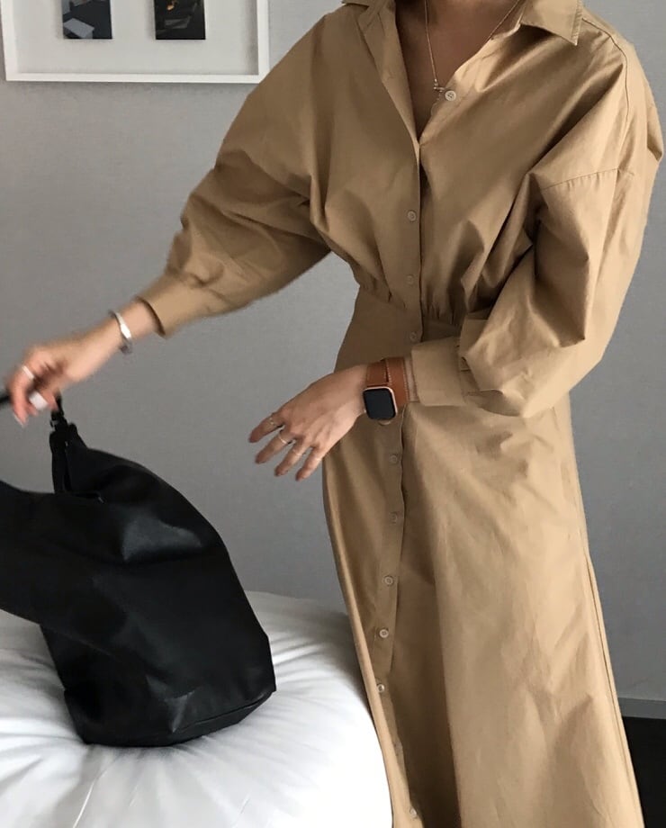 カジュアルからきれいめまで、幅広いスタイルで着こなせるロング丈シャツワンピース。
