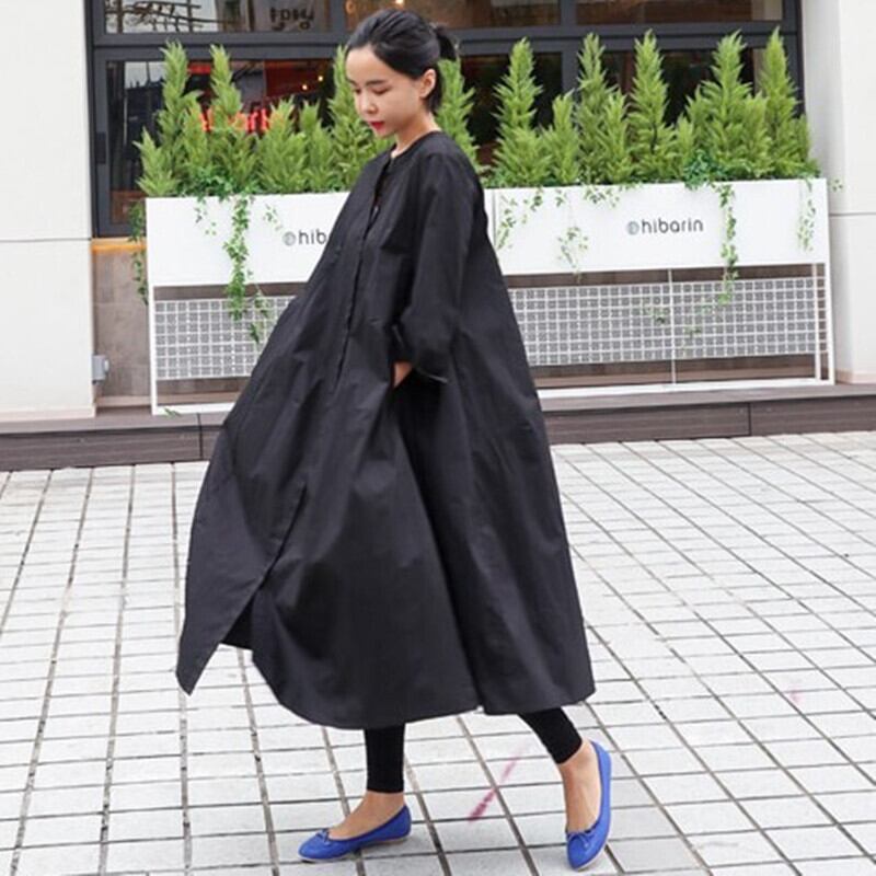 ワンピース シャツワンピース ロング丈 長袖 ノーカラー ワイド Aライン ポケット かわいい 大人可愛い きれいめ シンプル おしゃれ お洒落 無地 春 秋 10代 20代 30代 レディース デート お出かけ ファッション サイズ S M L XL 色展開 ブラック ベージュ