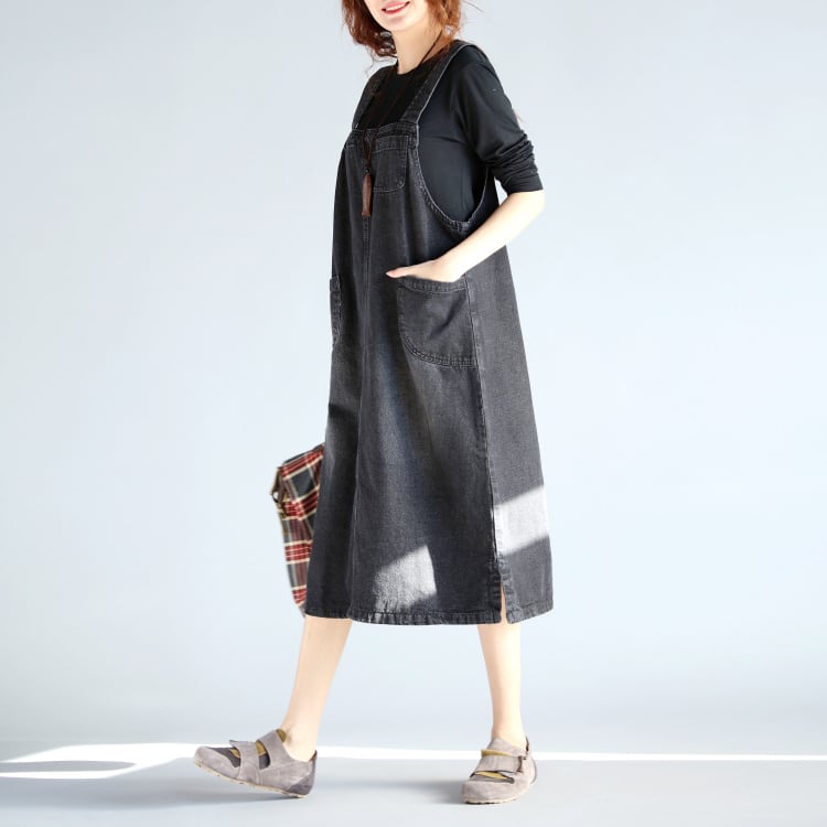 ワンピース ジャンパースカート 膝丈 ひざ丈 ノースリーブ サイドスリット ポケット デニム かわいい 大人可愛い シンプル カジュアル シック おしゃれ お洒落 おとな こなれ感 ラフ ルーズ 個性的 リラックス レトロ 抜け感 無地 学生 通学 お出かけ 女子会 お泊まり 休日 旅行 L XL ゆったり ゆる ブラック 黒 ブルー 青 春 夏 秋 冬 10代 20代 30代 40代 ママ 女性用 韓国 韓国系 着回し 普段使い 重ね着 体型カバー ワンマイルウェア 定番 ファッション コーデ スタイル