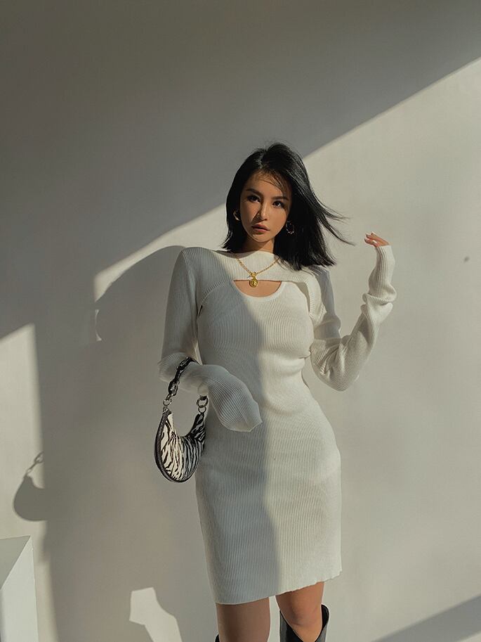 ヨーロッパとアメリカのファッションデザインが融合した、セクシーなデザインが魅力の長袖ニットウェアドレスです。