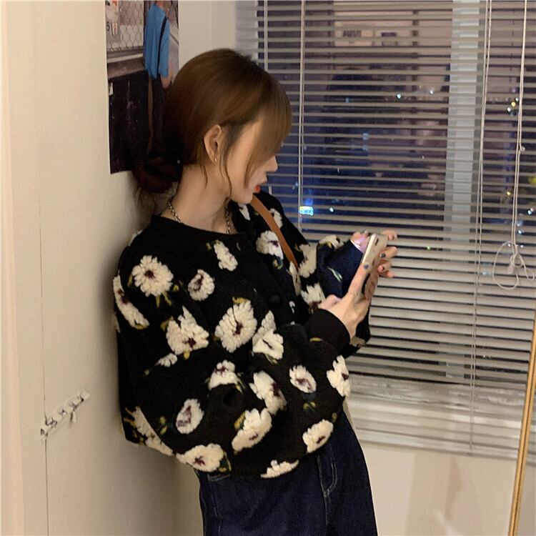 トップス カーディガン 袖あり 長袖 萌袖 襟なし 前開き 厚手 かわいい 大人可愛い きれいめ シンプル カジュアル 大人 上品 おしゃれ お洒落 かっこいい 大人女子 こなれ感 ラブリー キュート ガーリー 個性的 主役級 存在感 柄 花柄 フラワー 秋 冬 20代 30代 レディース 女性用 デート お出かけ 公園デビュー 女子会 お泊まり 休日 旅行 着回し 普段使い 重ね着 インスタ映え サイズ ワンサイズ 色展開 黒 ブラック 茶色 ブラウン