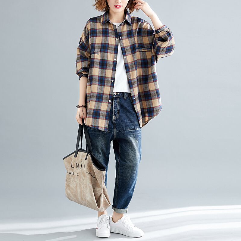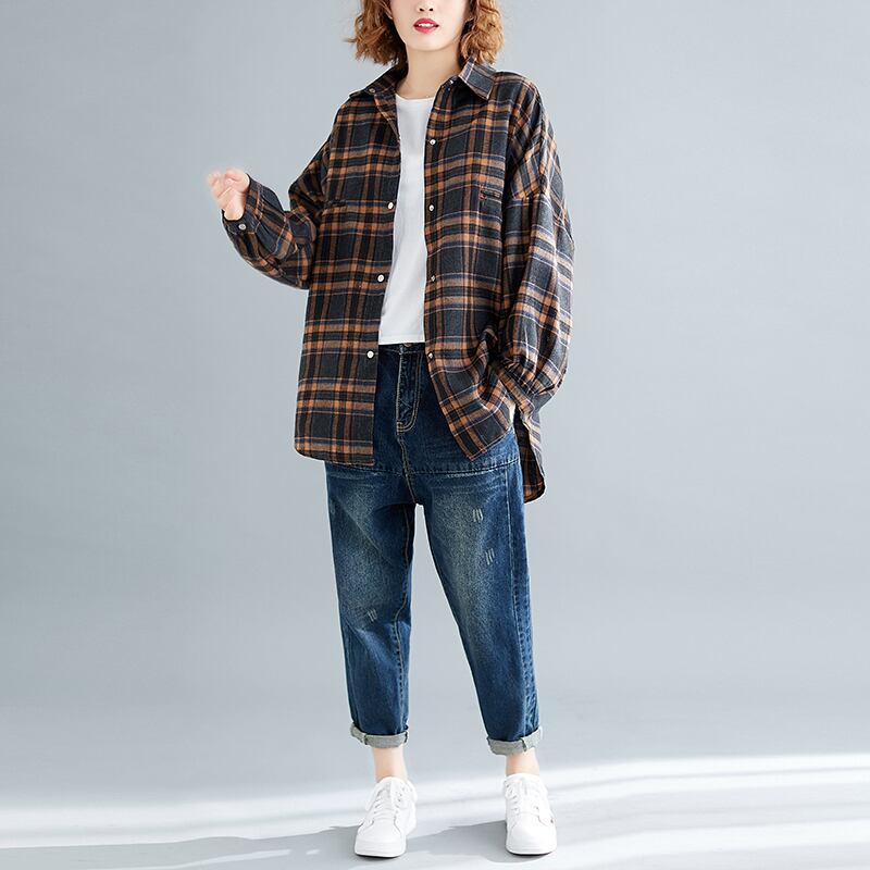 トップス シャツ ブラウス 袖あり 長袖 かわいい 大人可愛い シンプル カジュアル おしゃれ お洒落 おとな こなれ感 ラフ メンズライク マニッシュ ボーイッシュ ルーズ 個性的 リラックス レトロ モダン 抜け感 チェック柄 学生 通学 デート お出かけ 女子会 休日 アウトドア 旅行 散歩 L XL ゆったり ゆる ブルー 青 ブラウン 茶色 春 秋 冬 10代 20代 30代 40代 ママ 女性用 韓国 韓国系 着回し 普段使い 重ね着 体型カバー 定番 ファッション コーデ スタイル