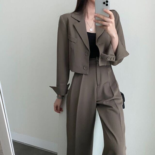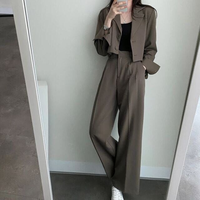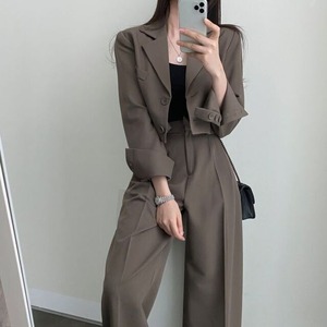 大人気のセットアップ。上品なデザインで、オフィスやビジネスシーンでも使える、万能なアイテムです。長袖の襟付きジャケットには、袖が付いているので、季節問わず着用できます。そして、テーパードパンツはショート丈で足首が見える、女性らしいデザインになっています。オシャレに見えるのに、着用していても動きやすいのが魅力的。上品な無地で、誰にでも合わせやすいため、オフィスやカジュアルなシーンでも大活躍間違いなしです。