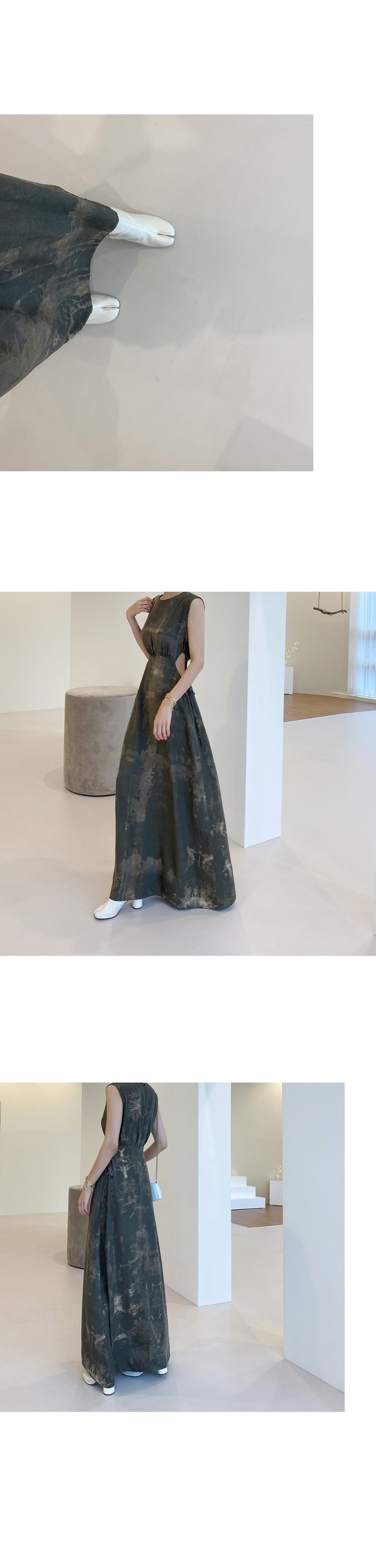 さらっとした素材感と、袖なしのデザインがこれからの季節にぴったり。マキシ丈なので、リゾートや海でも活躍してくれます。