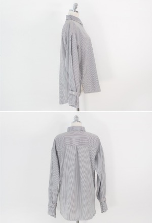 大人ガーリーなキャンディースリーブや上品なストライプ柄が魅力の、ルーズシャツです。
