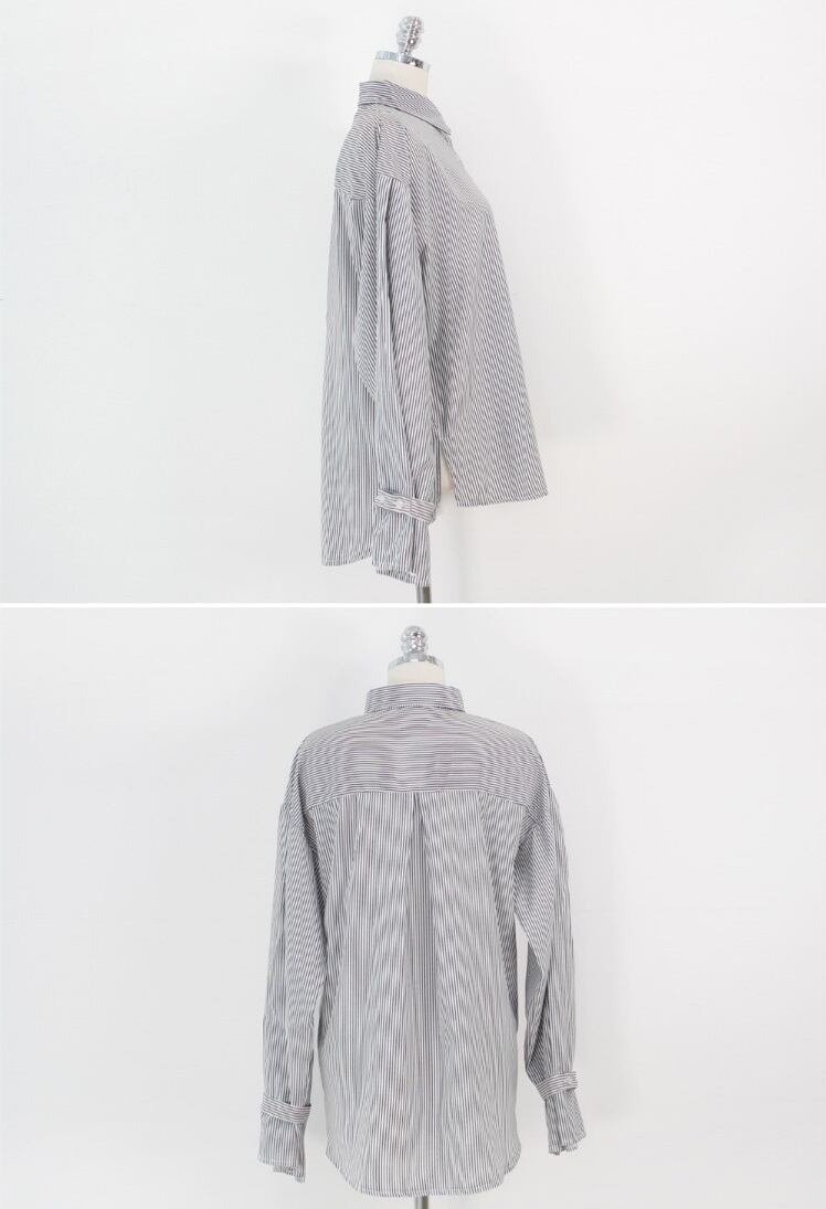 ストライプ柄 キャンディースリーブ ルーズ シャツ トップス ミディアム丈 袖あり 長袖 ドロップショルダー 襟付き 前開き かわいい 大人可愛い きれいめ シンプル カジュアル 大人 おしゃれ お洒落 大人女子 こなれ感 ガーリー 柄 ストライプ 春 秋 10代 20代 レディース 通勤 学生 通学 デート お出かけ 女子会 休日 旅行 着回し 普段使い 重ね着 韓国 サイズ S M L XL 色展開 黒 ブラック 青 ブルー