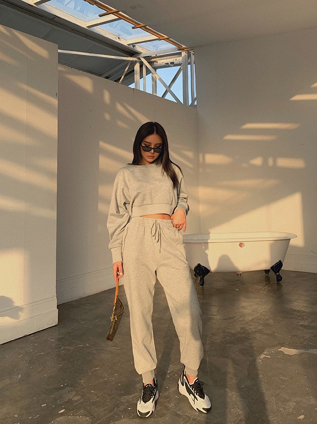 ラグランショルダーとラウンドネックがカジュアルな雰囲気を演出します。
