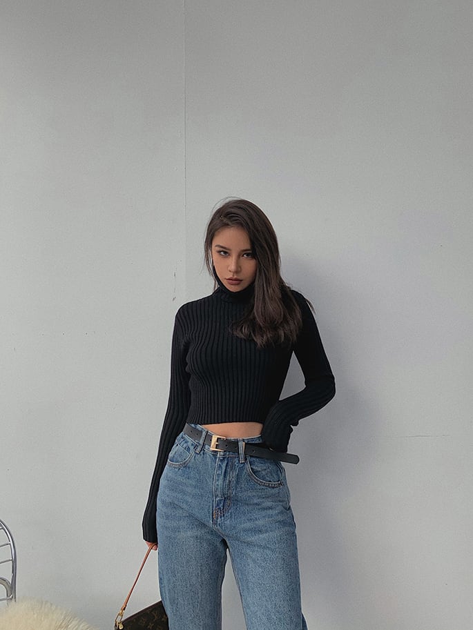 ハイウエストとタートルネックの組み合わせは、セクシーでエレガントな雰囲気を醸し出し、大人の女性の魅力を最大限に引き出してくれます。