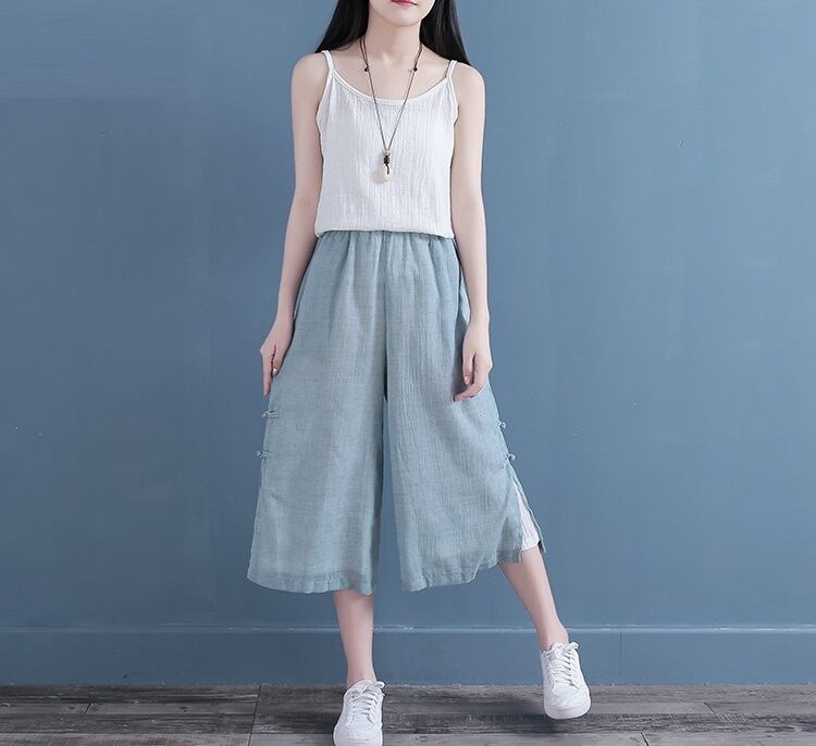 麻 綿 7分丈 ワイドパンツ ボトムス パンツ ズボン ガウチョパンツ ワイド ポケット ハイウエスト ウエストゴム 伸縮性 リネン 薄手 かわいい 大人可愛い シンプル カジュアル 大人 おしゃれ お洒落 レトロ 大人女子 ラフ 抜け感 無地 春 夏 10代 20代 レディース 通勤 学生 通学 デート お出かけ 女子会 休日 旅行 着回し 普段使い 楽ちん 体系カバー フリーサイズ 色展開 白 ホワイト 青 ブルー ベージュ ピンク
