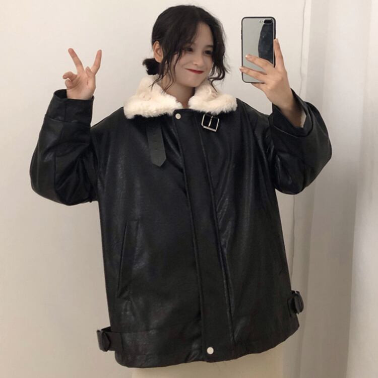 アウター ライダースジャケット レザー 長袖 ストレート 裏起毛 かわいい おしゃれ お洒落 かっこいい レトロ ボーイッシュ 無地 冬 10代 20代 レディース デート お出かけ 暖かい 防寒 サイズ S M L ブラック